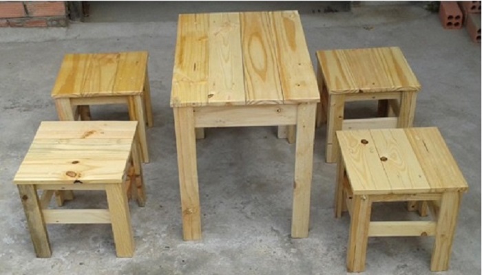 Bàn ghế gỗ mini thường làm từ gỗ thông tự nhiên hoặc gỗ tràm.