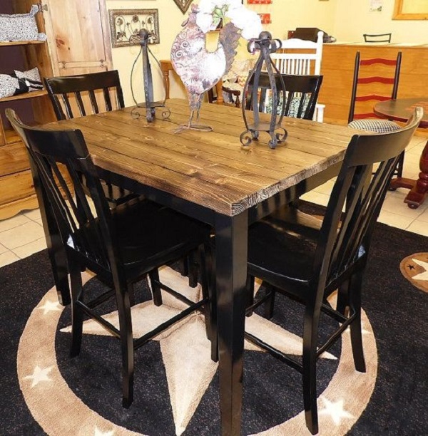 Tông màu của gỗ tự nhiên kết hợp với sắc đen của chân bàn, chân ghế giúp mẫu bàn và ghế này thu hút người nhìn ngay lần chạm đầu tiên. Sản phẩm được bán với giá bình dân nên phù hợp với hầu hết các không gian quán nhậu nhỏ hoặc lớn.