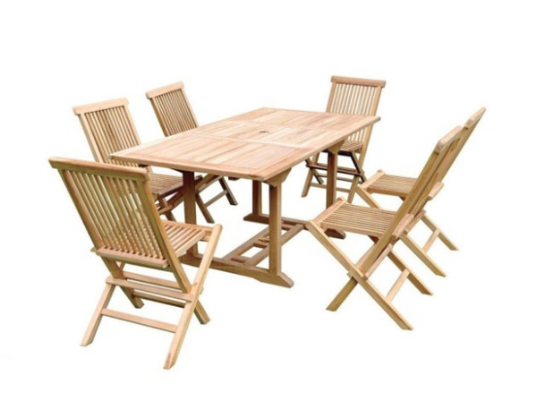 Bàn ghế gỗ dạng xếp giúp tạo điểm nhấn cho không gian